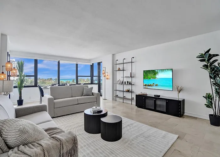 Con instalaciones de spa como un jacuzzi y una sauna, este apartamento de 130 m², Oceanfront Beach Retreat Beach Service 502 Miami Beach, está situado en el distrito Mid-Beach, a una distancia de 3 km del Parque Collins. Los huéspedes también podrán disfrutar de una piscina equipada con un bar.